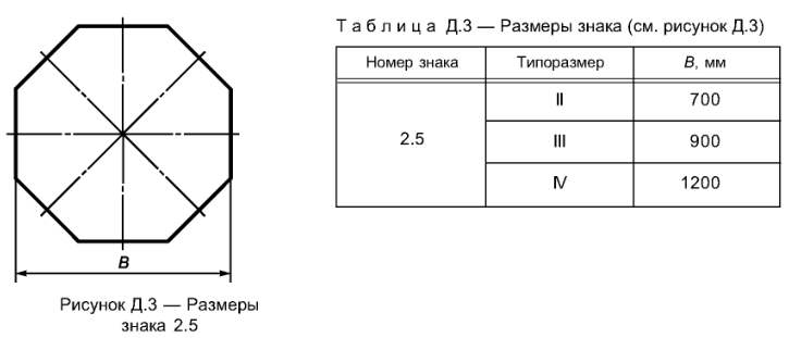 Знак 2.5 "Движение без остановки запрещено" применяют для указания водителю остановиться и уступить дорогу транспортным средствам, движущимся по пересекаемой дороге.